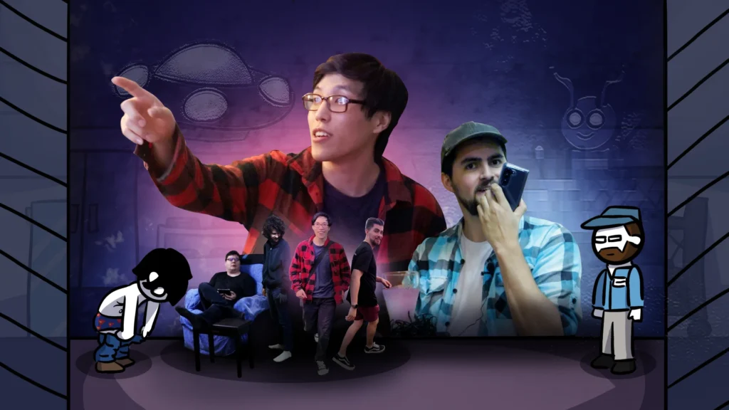 All episodes of the podcast were recorded as part of a 3-hour recording session. Nothing was written down beforehand, and it’s one of my favourite things I’ve ever made. I love making improvised videos, though I don’t get many opportunities to make them with other people, and doing improv alone is really difficult and never as funny. The audio medium allowed us to run free without the limitations of live action and the huge work required of animation. There are also jokes that only work in an audio medium that I was so pleased to find.